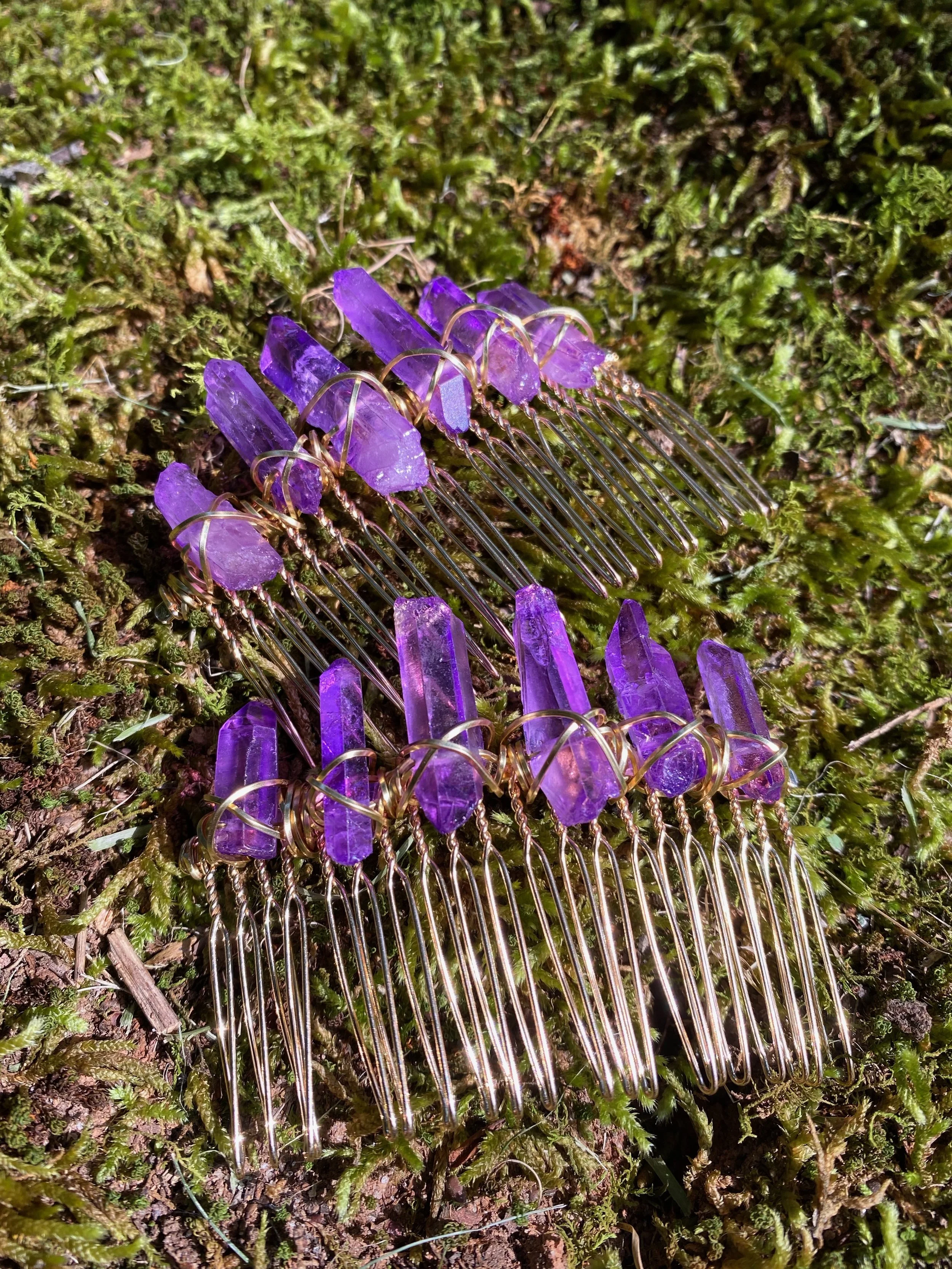In the early days of the pandemic, there was a Tiara Fairy delivering tiaras to SCA people to enjoy. I supported the fairy by making these wire wrapped crystal tiaras.