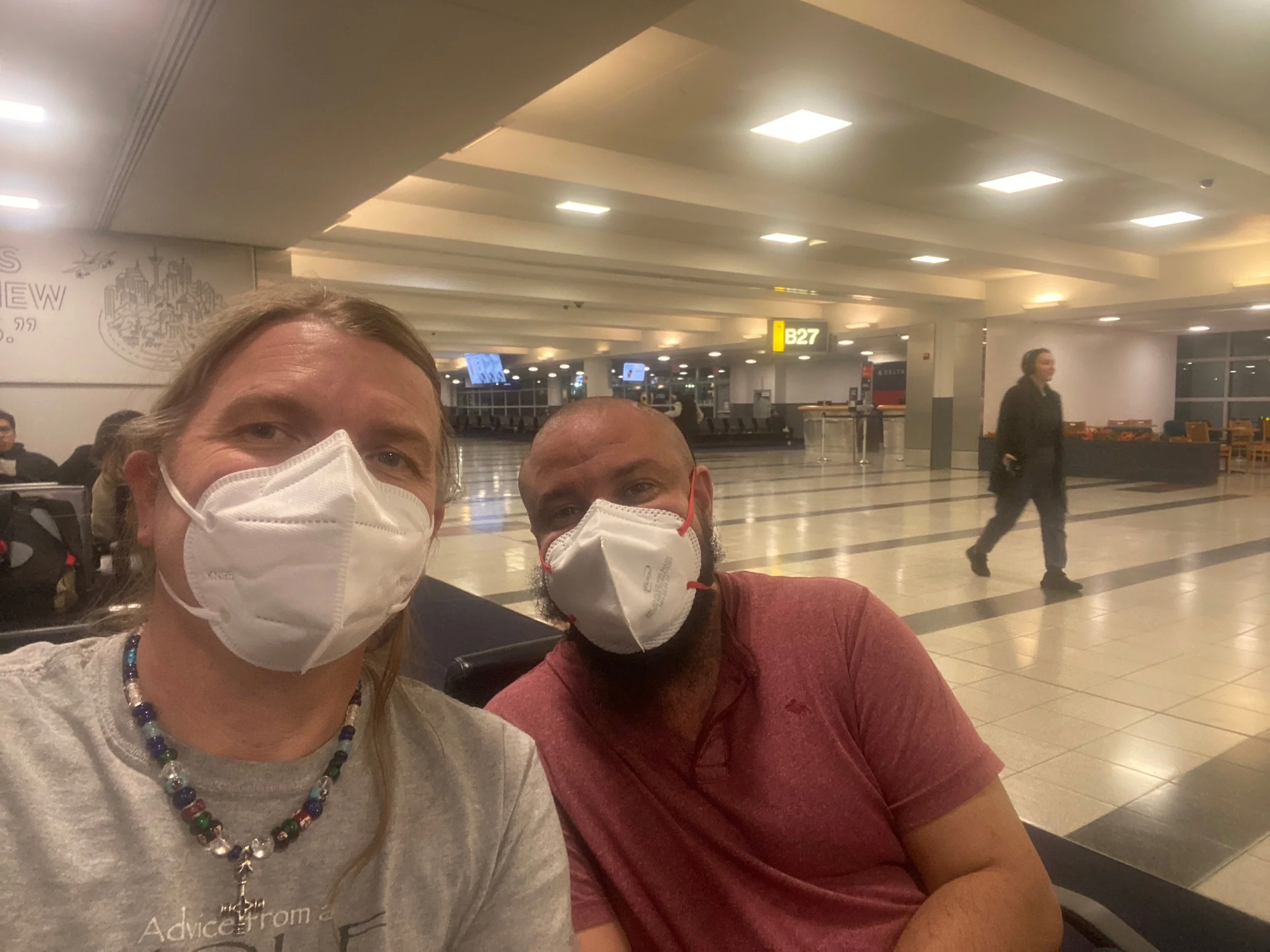 We boarded the plane around 11:30 PM EST and we would have taken off early had there not been an issue with the door on the plane arming. Once up in the air, we were glad to have eaten the Publix sandwich as we only got a snake on the plane; soda, fruit, nuts, and cheese. We attempted to watch a movie but both of us fell asleep.