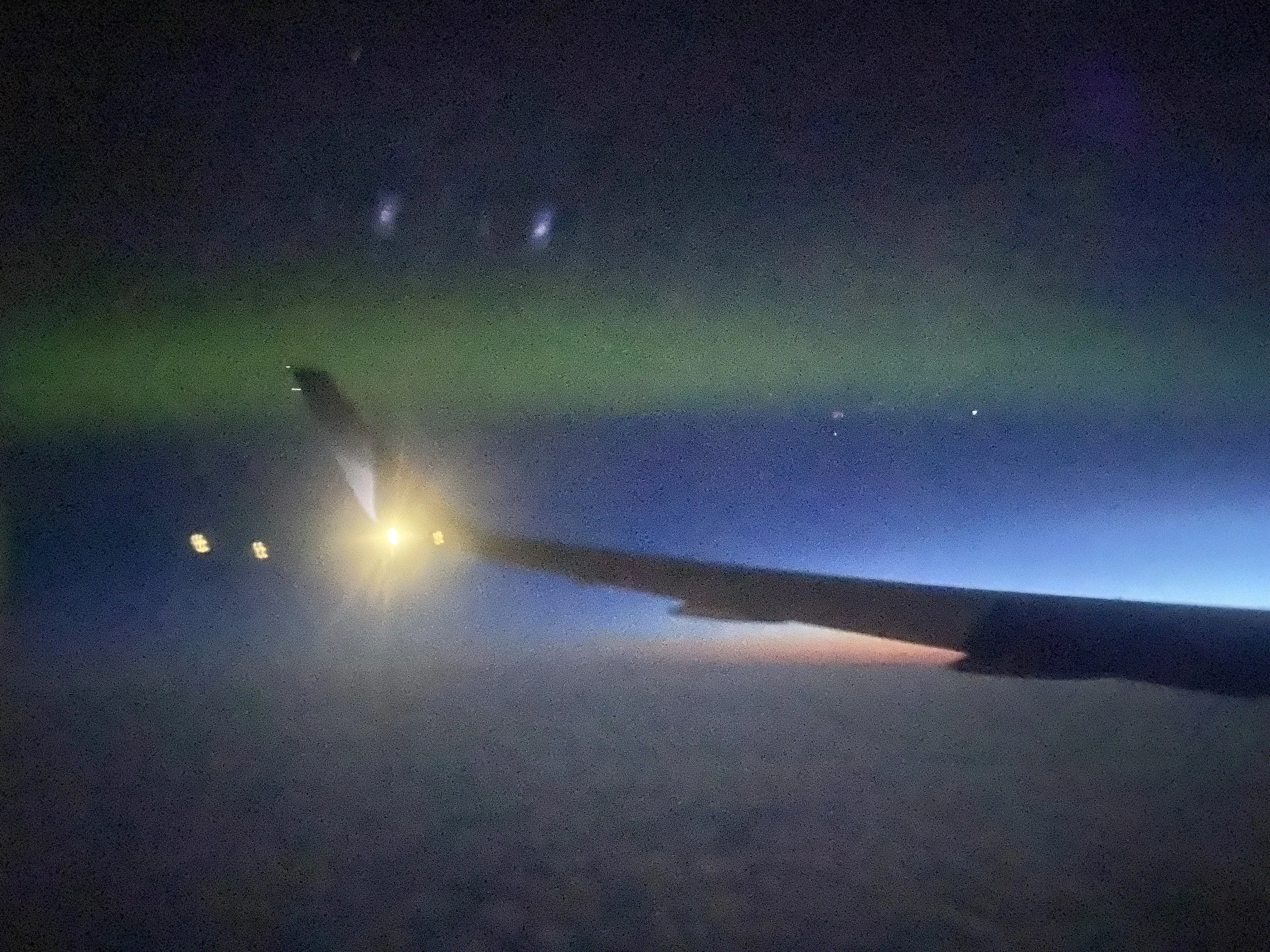 I woke up over the North Atlantic and looked out the window to see the Northern Lights. I spent the rest of the morning watching the lights until the sun came up.